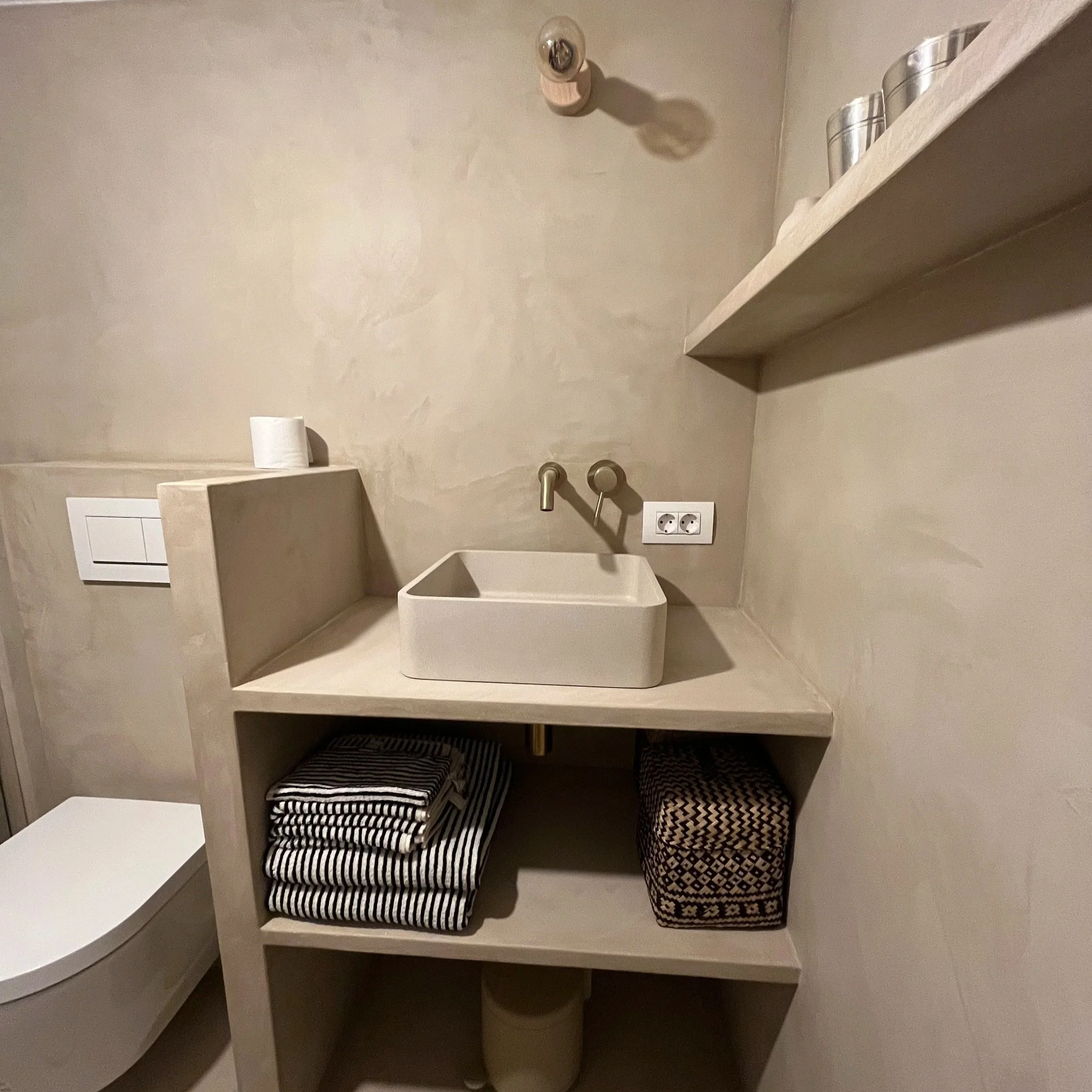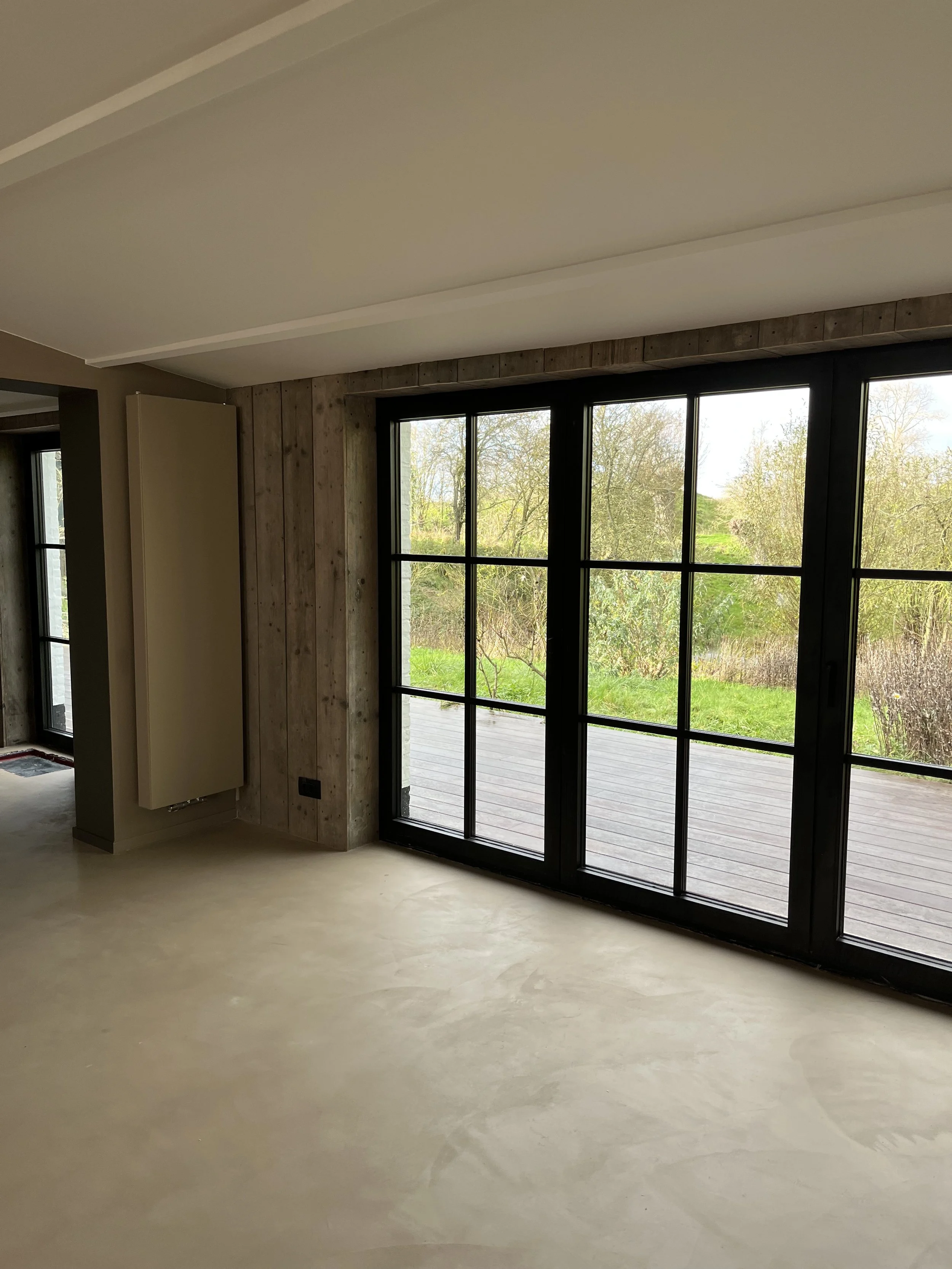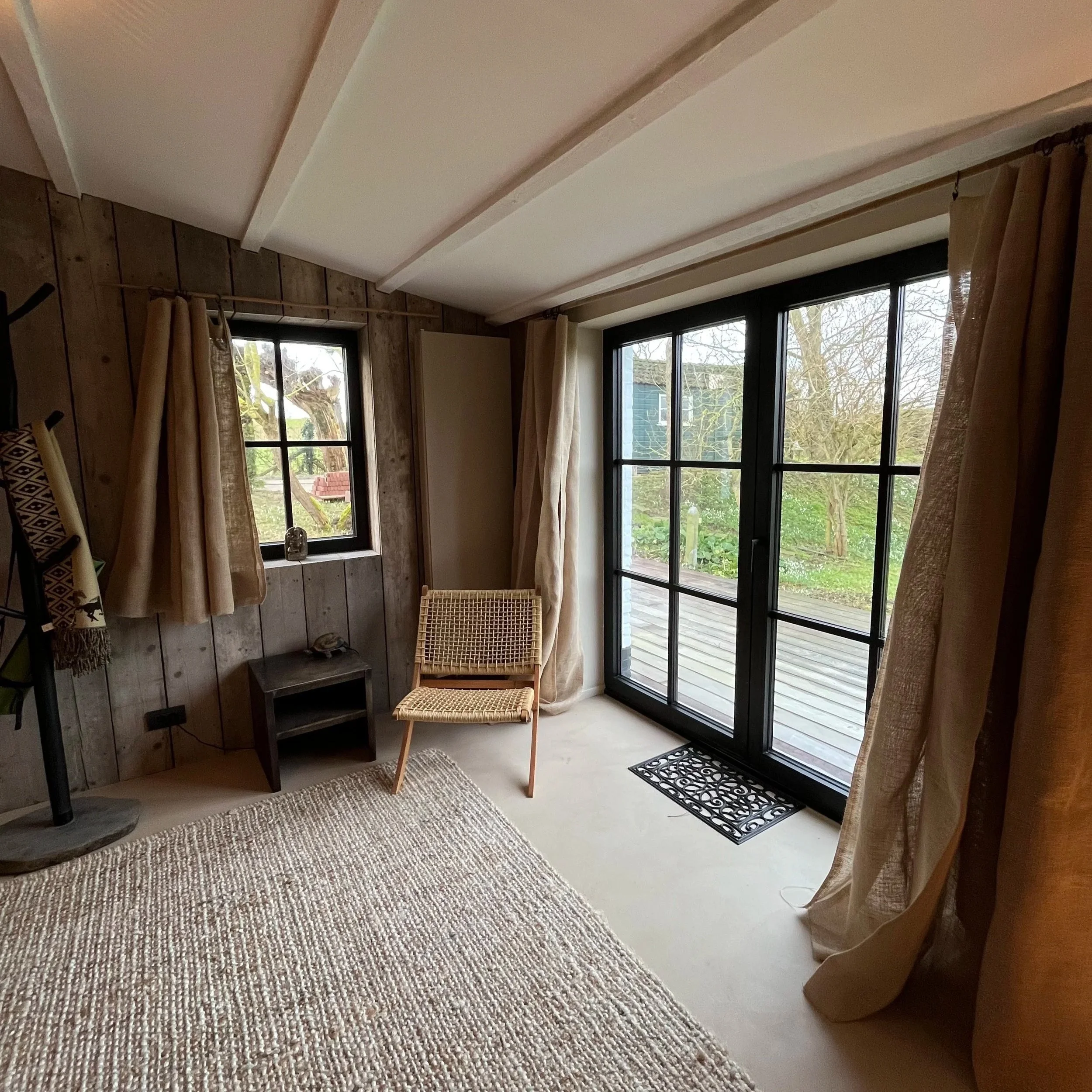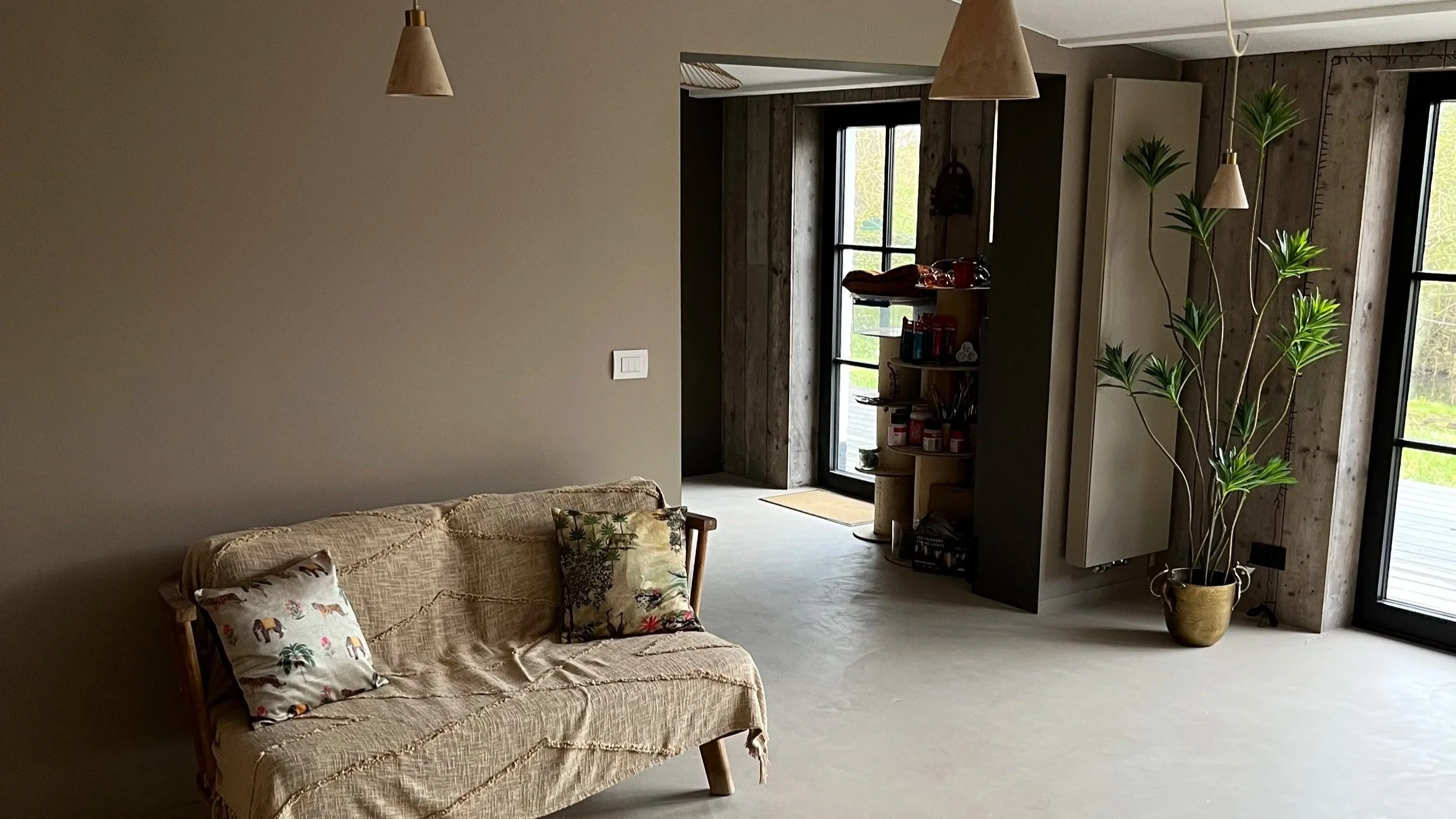 Cette fermette située aux Pays-Bas, à la frontière belge, a été entièrement rénovée à l’intérieur et à l’extérieur. D’une habitation 1 chambre et 1 salle de bain, elle a été transformée en 2 chambres, 2 salles de bains et un bureau. Sols et salles de bain en mortex, murs en chêne vieilli, le tout donne une atmosphère chaleureuse et cosy.